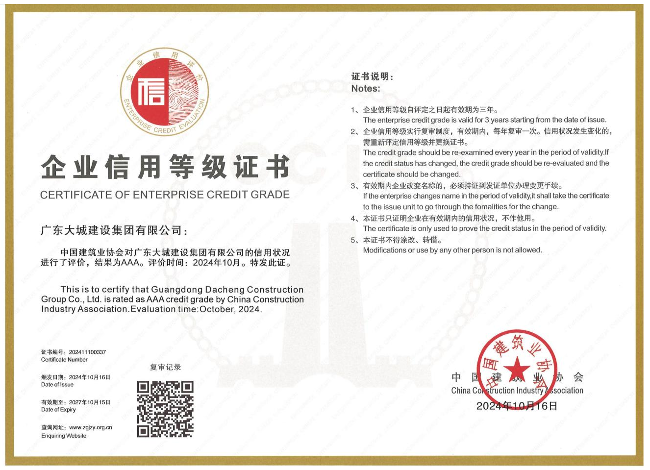 我司榮獲全國“建筑業(yè)AAA級信用企業(yè)”稱號(hào)