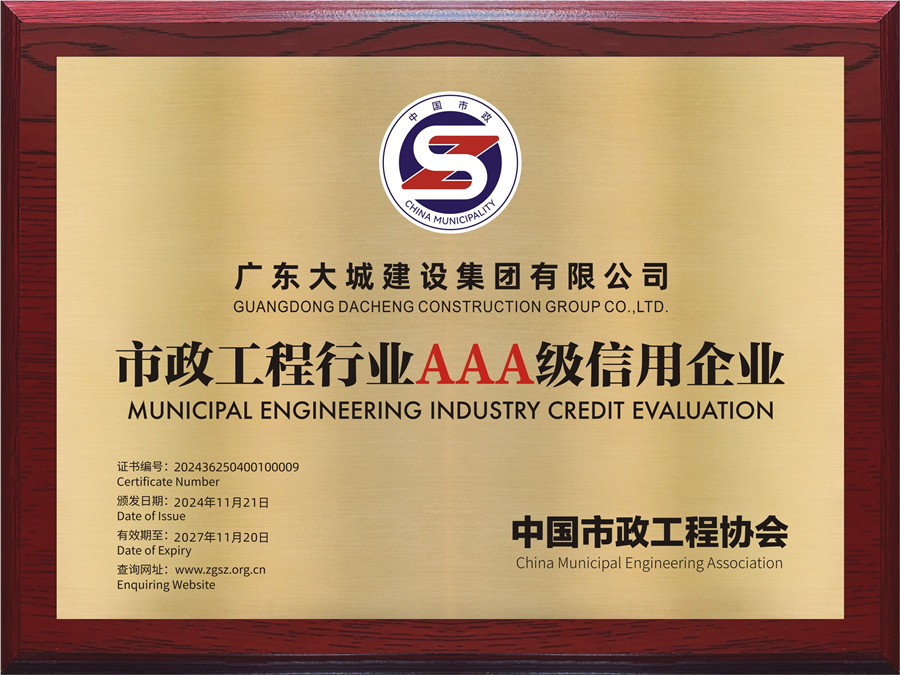 我司首次榮獲“中國市政工程行業(yè)AAA級信用企業(yè)”稱號(hào)
